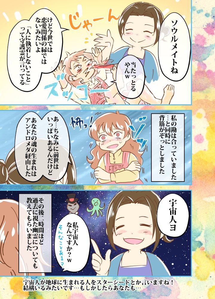 #本当にあったある意味怖くてスピリチュアルな話 霊視編① 19話目 霊視結果が地球外生命体…っていう(笑) ◆連載エッセイ漫画→ lin.ee/1QbmnR2yP #本スピ #アトリエの系譜 #漫画が読めるハッシュタグ
