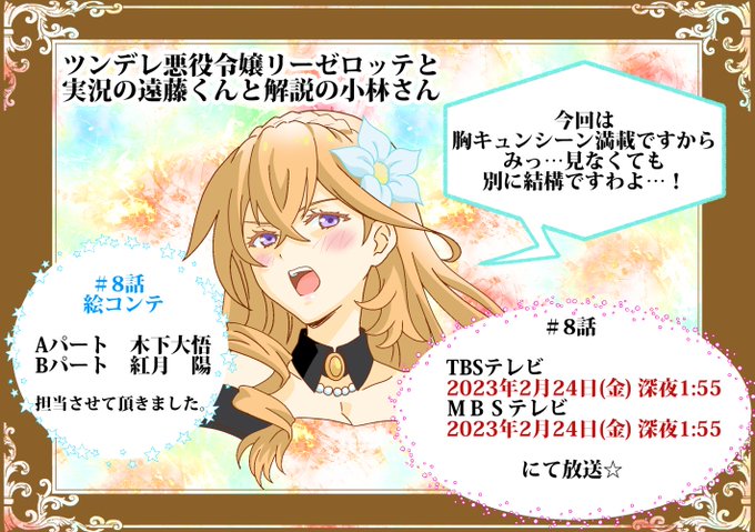 【ツンデレ悪役令嬢リーゼロッテと 実況の遠藤くんと解説の小林さん】の #8話 「師弟と仮面とツンギレ令嬢」の絵コンテを描かせて頂きました❇ ツンデレを超えたツンギレ& ハグシーン満載の胸キュン回です💛❤️💙 是非お楽しみ頂けると幸いです👏 #ツンリゼ twitter.com/tsunlise_pr/st…