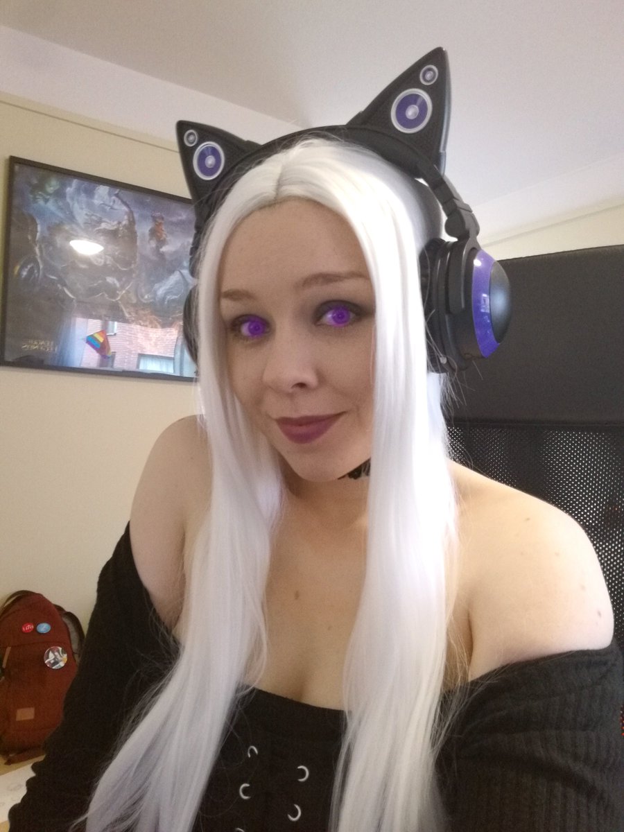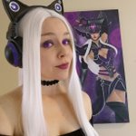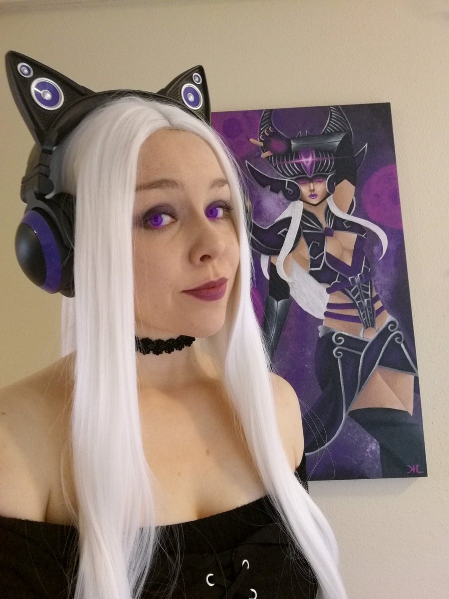 Casual Syndra cosplay 🖤💜🖤💜🖤 She has a great gaming setup, she's using it to watch Worlds right now! #G2WIN #syndra #LeagueOfLegends #cosplay #Worlds2019