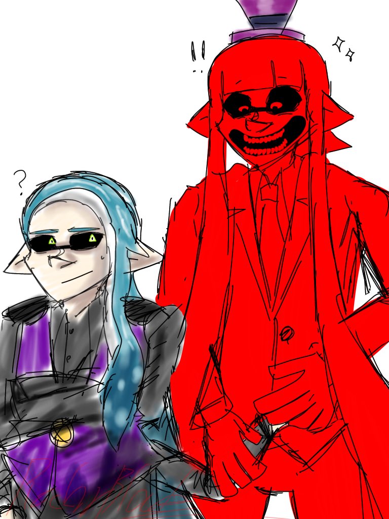 ミューリーと赤い子(落書き) #赤い子チャン #RedorBlackのマイイカ・タコ