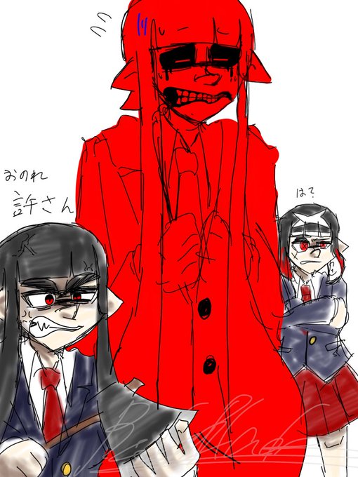 ジェガーと赤い子(落書き) #赤い子チャン #RedorBlackのマイイカ・タコ