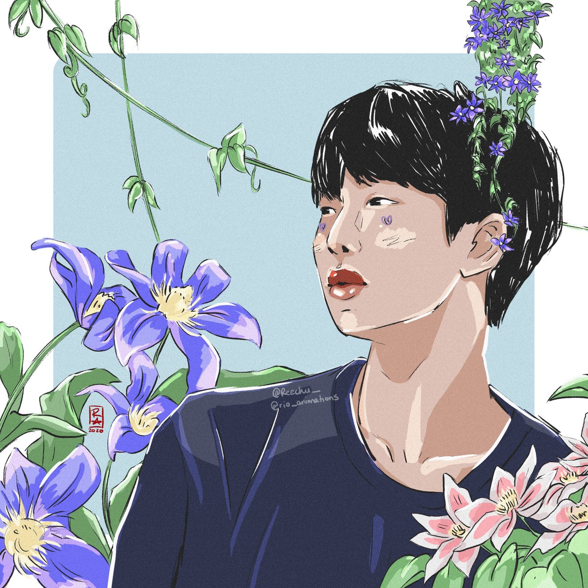 So I finally did the thing that was a thing a few days ago 👉🏼👈🏼 Honestly, it’s strange thinking this style popped out during lockdown 💜 🥺🌻🌿🌷☁️☀️ #faceyourart #btsfanart