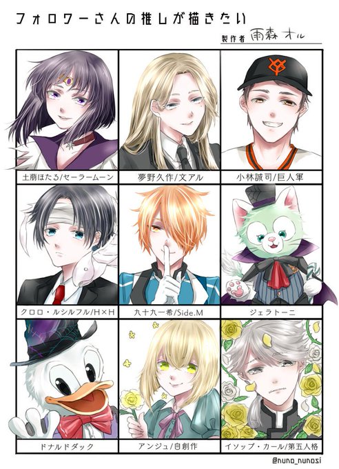 大変遅くなりました...!!ありがとうございました〜! 最後の2枠は自創作と最近の推しで埋めました👏 #フォロワーさんの推しが描きたい @316_larme @watership03 @umininn_mn @enka0430 @hyp_niro_01 @_me_ri_co_ @picoponiovo