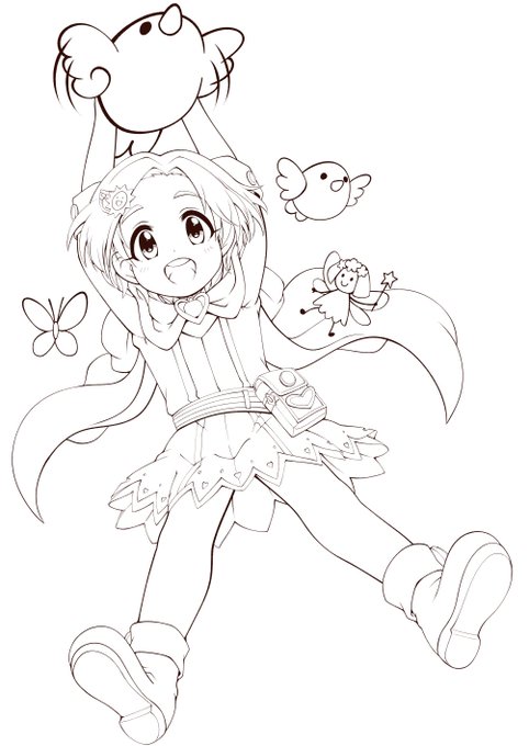 途中経過線画[魔法のスマイル](特訓後)佐々木千枝ちゃん。