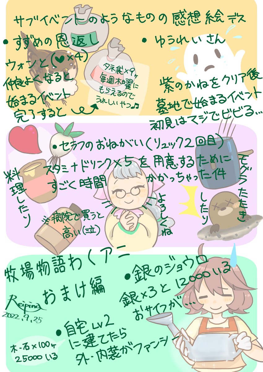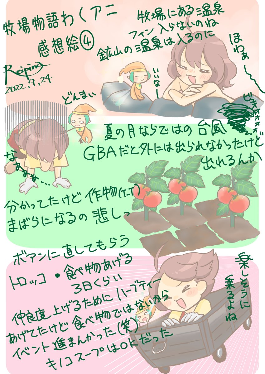 6 28 ぼくものわくアニの感想絵 久しぶりにプレイして 思ったこととメモを描いてみた 攻略(本の内容)もちょい書いてある #牧場物語 #わくアニ #イラスト 22/08/11 12:30