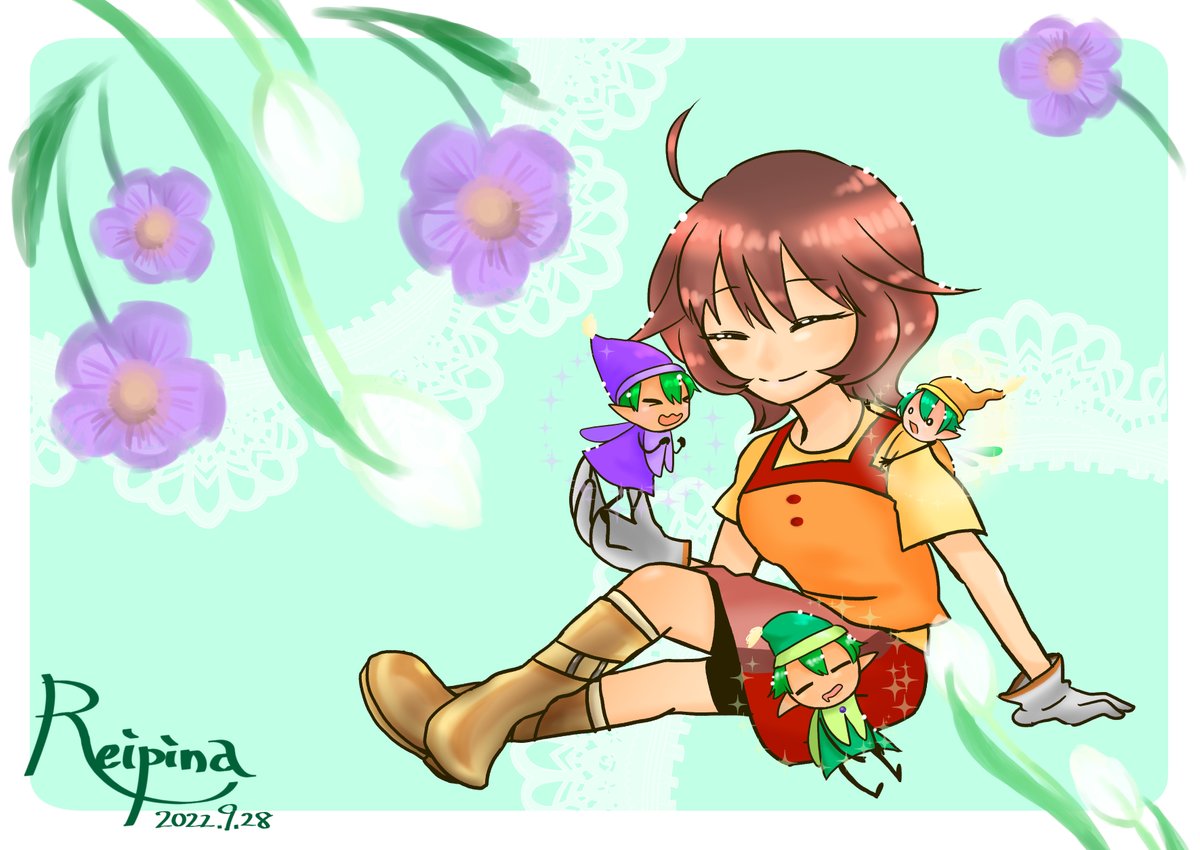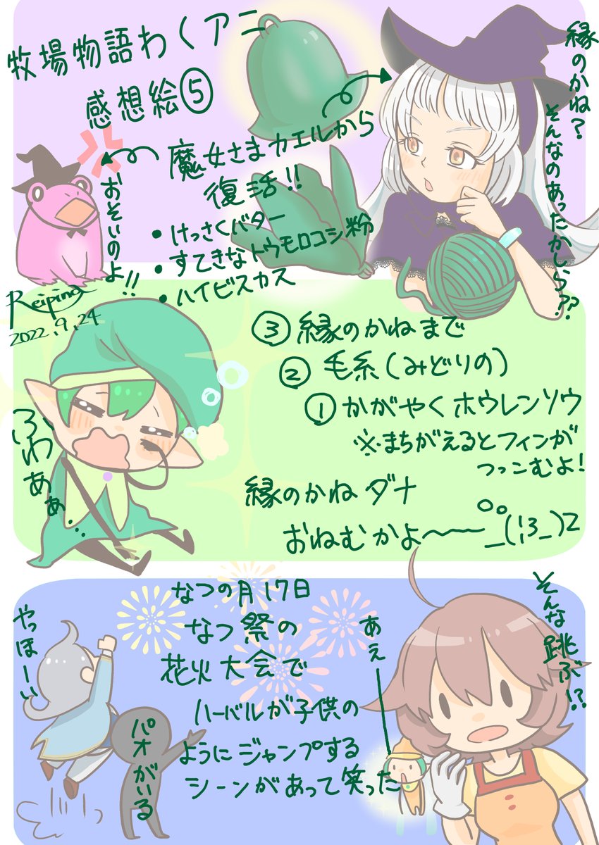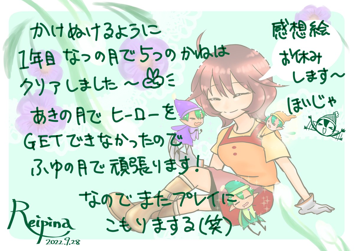 5 28 ぼくものわくアニ プレイ感想絵 なつの月は 忙しいひと月だった― ダナのページ緑過ぎた 読めますか…? #牧場物語 #わくアニ #イラスト 22/09/24 17:14
