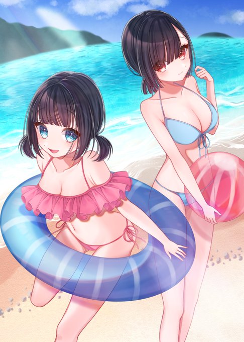 3 23 前回描いた双子ちゃんを海に連れてきました。 背景がんばったよ… #イラスト #創作 22/06/28 20:59