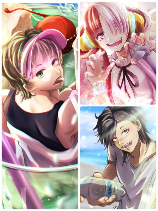 #今月描いた絵を晒そう 今月は夏らしく彩度高めのイラストになったな🤔😎⛱ 中々コンスタントに描けず月に数枚しか描けませんが、いつも♡、🔁ありがとうございます🙏✨ 来月もよろしくお願いします(⋆ᴗ͈ˬᴗ͈)”