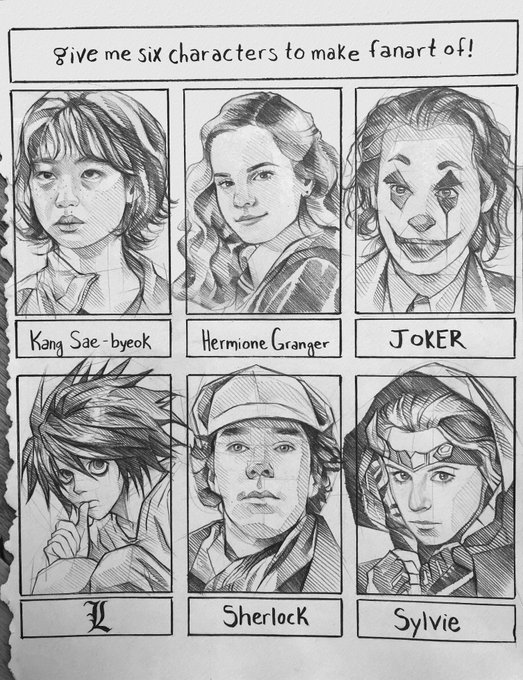 Finally got around to doing the #sixfanartschallenge :) #sixfanarts #saebyeok #squidgame #harrypotter #joker #deathnote #sherlock #sylvie #loki #drawing #art #fanart