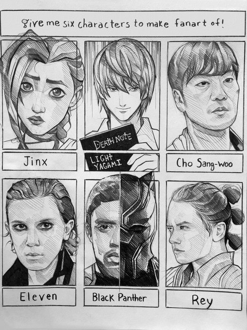 Six Fanarts Part 2 #sixfanarts #arcane #jinx #deathnote #squidgame #strangerthings #marvel #blackpanther #starwars #art