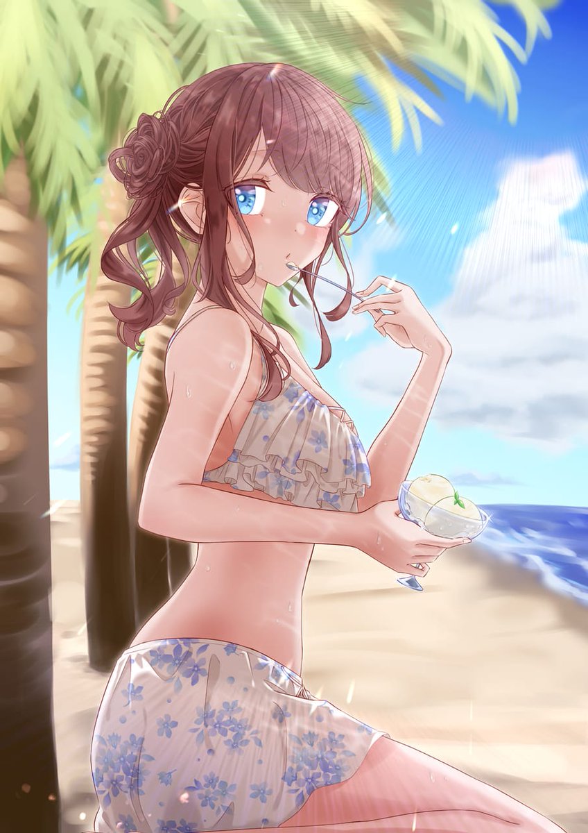夏【再】 medibang.com/picture/pm2108… #ARTstreet #MediBang #女の子 #オリジナル #イラスト #キャラクター #海 #2021年7月例コンテスト:水着 #碧眼