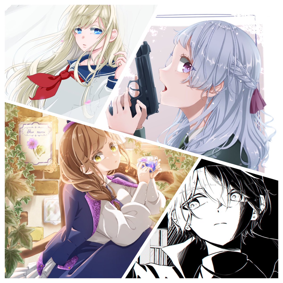 初夏 medibang.com/picture/j72105… #ARTstreet #MediBang #女の子 #オリジナル #キャラクター #青 #April2021_Flower #バラ #マーガレット #クチナシ