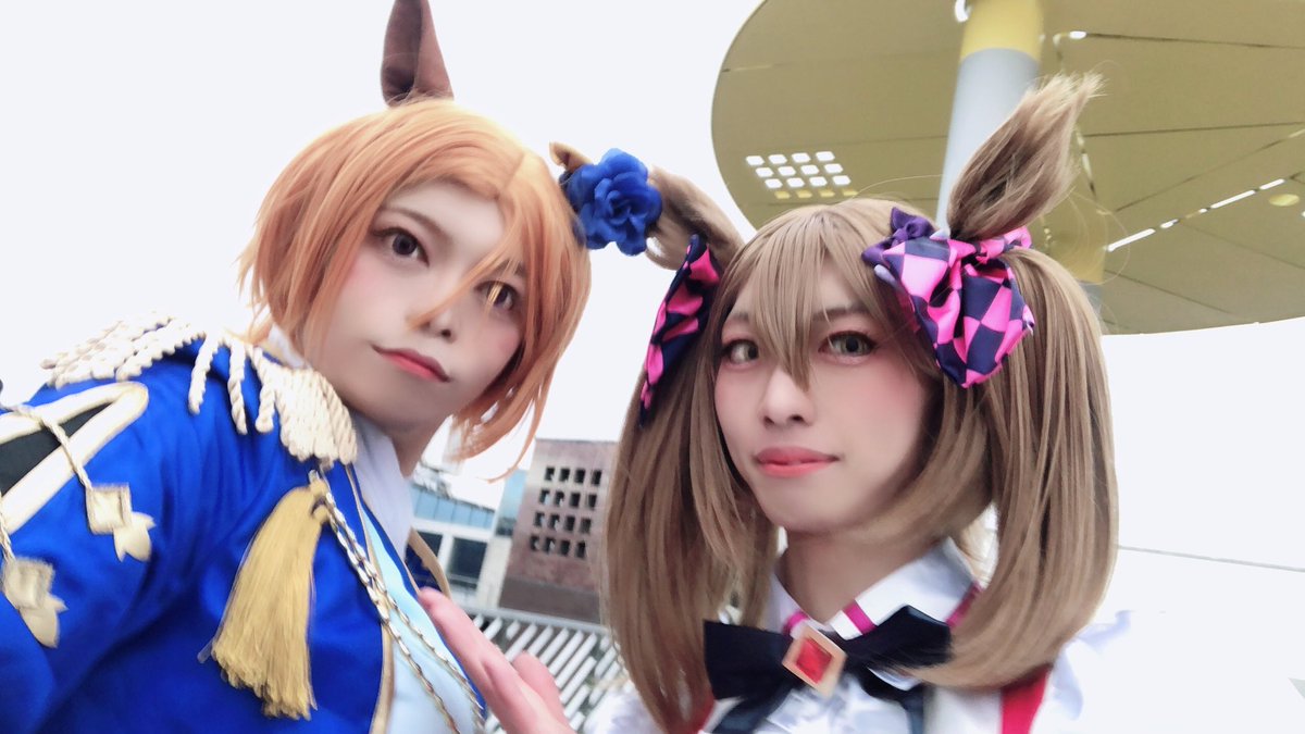 #cosplay /ウマ娘プリティーダービー 🐴テイエムオペラオー(晴れ着)🥕 🥕スマートファルコン(勝負服)🐴 「オペラオーさん、まだXmasなのにもう晴れ着…でも、敢えて型に囚われないのは流石オペラオーさんだね☆」 #アコスタ京都駅ビル #ウマ娘になってしまいました