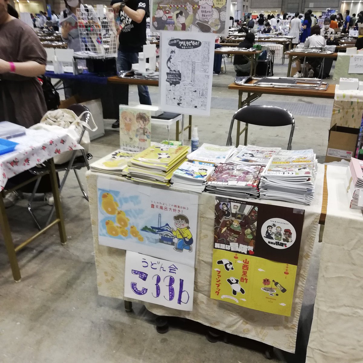 33 34 #コミティア144 うどん会設営完了!ち08aは大きい通路に面した角地よ来てね!「ち」はランチのち! 23/05/05 10:54
