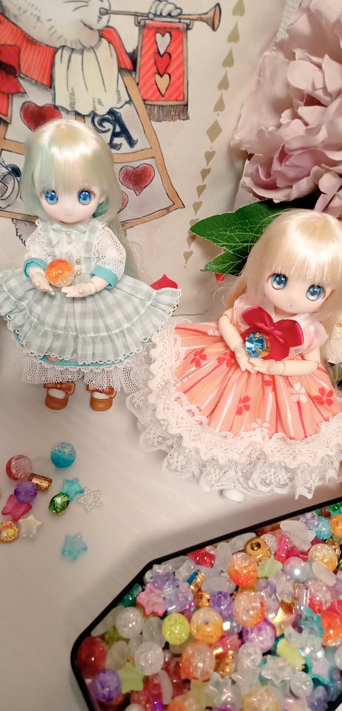 #今夜のドール撮影120分一本勝負 お題「うえから」 🍬ヾ(*´∀`*)ノ光り物は好き🎵 🍪うえから撮られてますけど… #アゾカツ #シュガーカップス #キャンディールル #ビスケティーナ