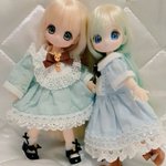 #今夜のドール撮影120分一本勝負 お題「はずかしいポーズ」 🍭あっ……見られちゃった😓 🍪…はっ(*/□\*)はずかしぃ… #アゾカツ #シュガーカップス #キャンディールル #ビスケティーナ