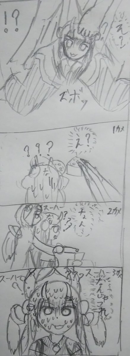 下手なりに今見たことを4コマにしたよ #アキびゅーわーるど #アロ絵 #百鬼絵巻