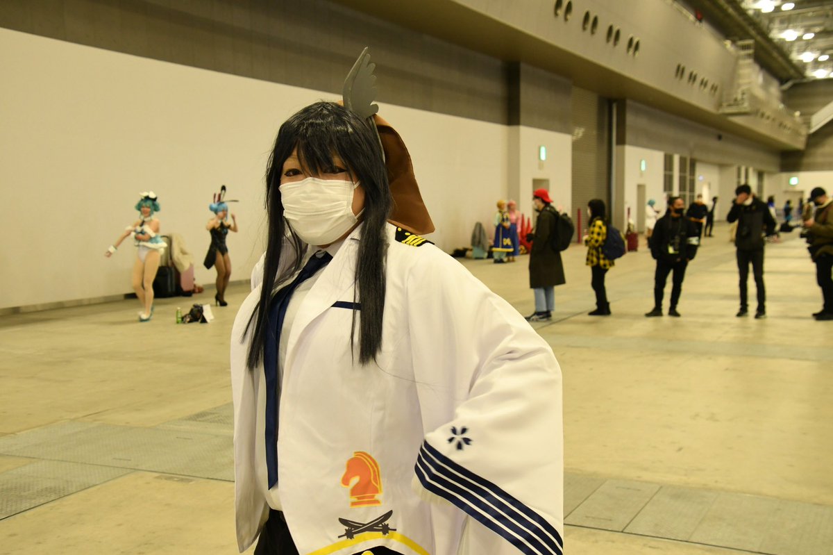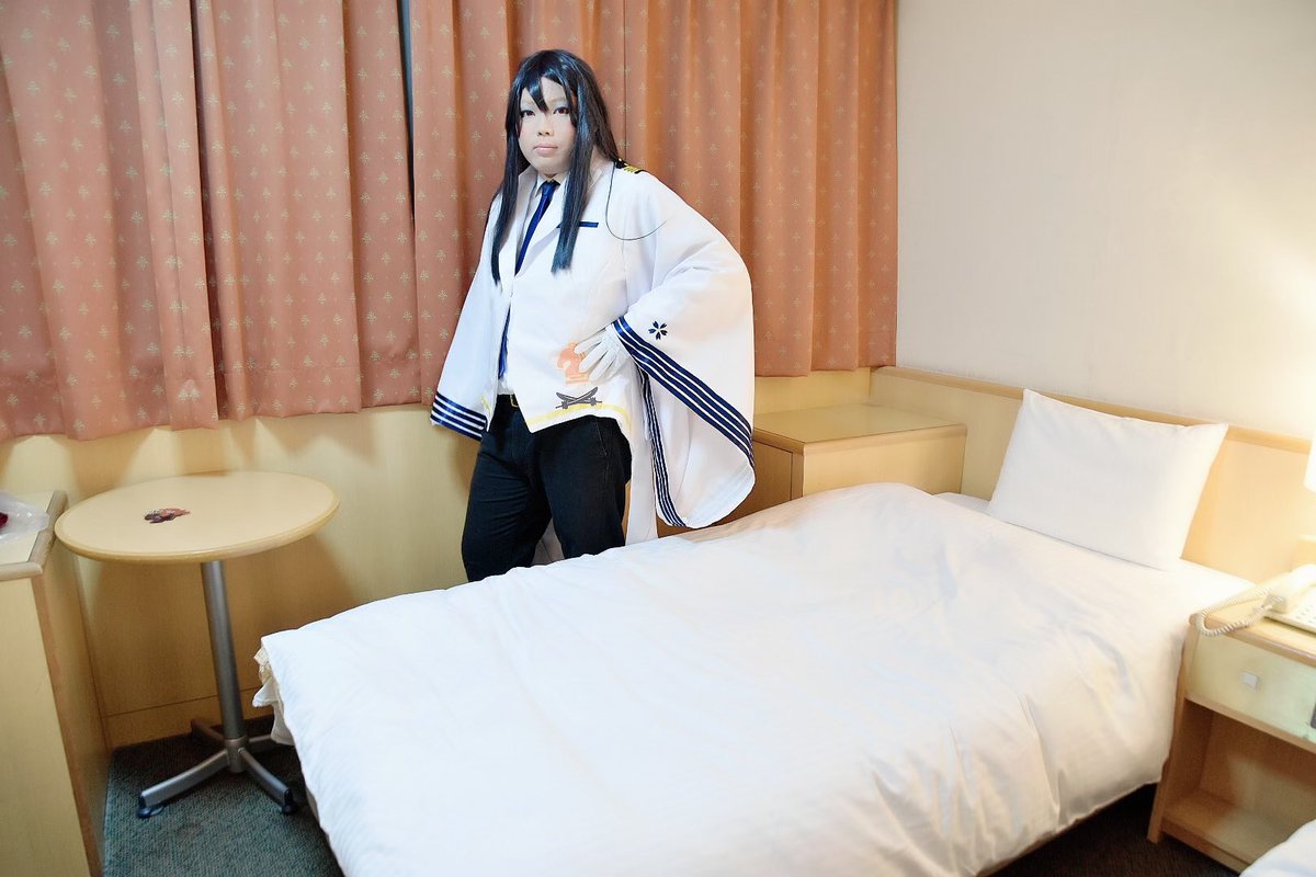姉さんは旅先でコスしてるin佐世保 東風谷こもさん(@46Rmsk )原作の「#花曇フリートメイデン 」より「くらま」さん。 原作ではポニテですが、佐世保ゆきが急遽決定というのもあり用意が間に合わず、髪を下ろてます。 これからお風呂的な感じにしておいてください(小声) #コスプレ