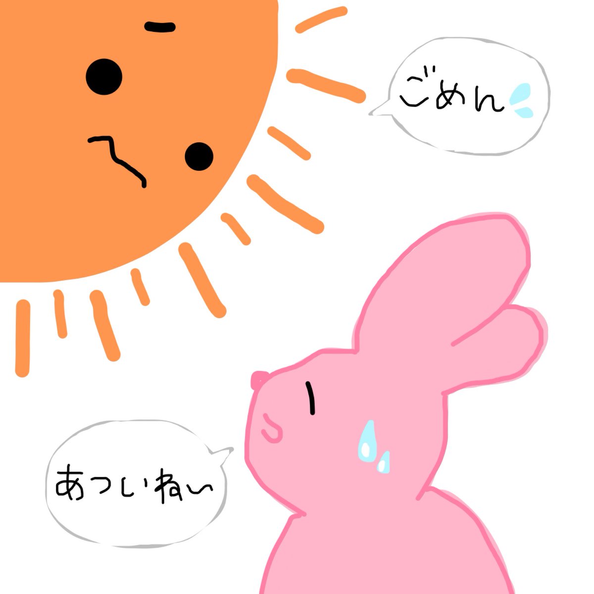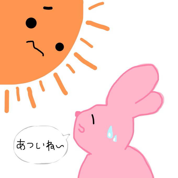 現在大雨やけどほんと最近暑すぎよねぇ。描いてて、だんだん太陽が可哀想になったからうさぎの表情も穏やかにしておいた。 #イラスト #うさぎ #手書き #きっとまだ本気ではない #夏