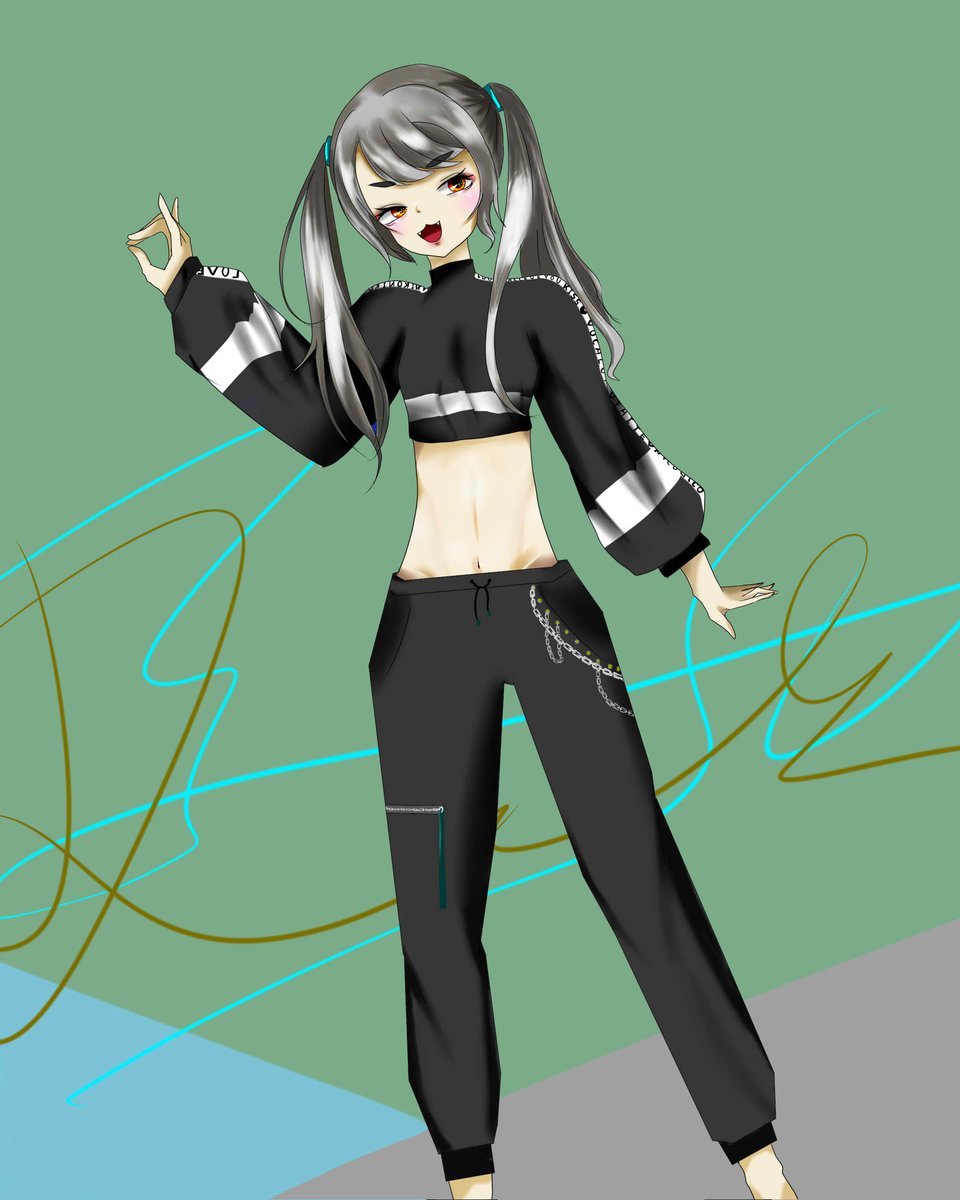 #絵描きさんとつながりたい #絵柄が好みっていう人にフォローされたい 韓国ファッション風な女の子を 描いた! 腹筋の塗り方がよくわからんやった。