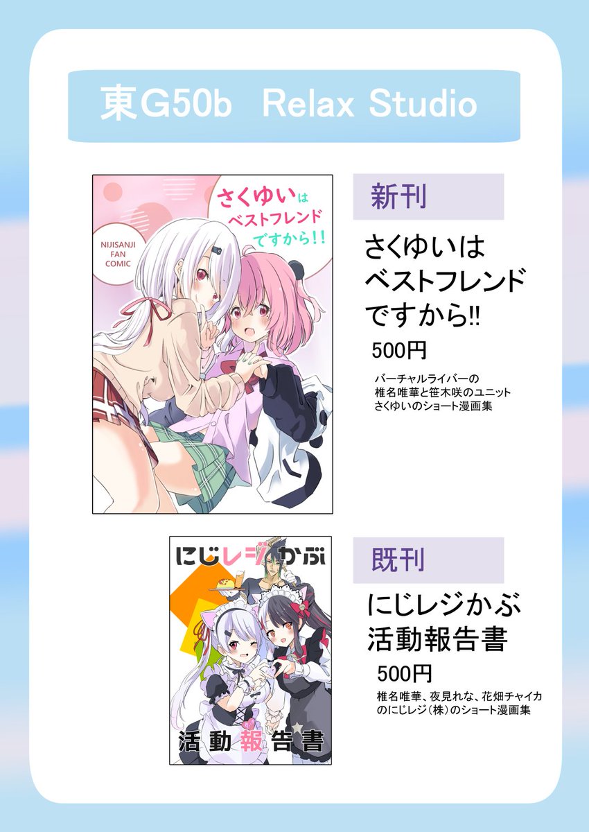 【宣伝】 コミケ新刊「さくゆいはベストフレンドですから!!」(B5/36P/500円)を12/30(金) 東地区 "G" ブロック 50bで頒布予定です! さくゆいが仲良く遊ぶショート漫画集になります。 長めのサンプルは以下から!webcatalog.circle.ms/Perma/Circle/1… #C101