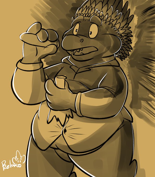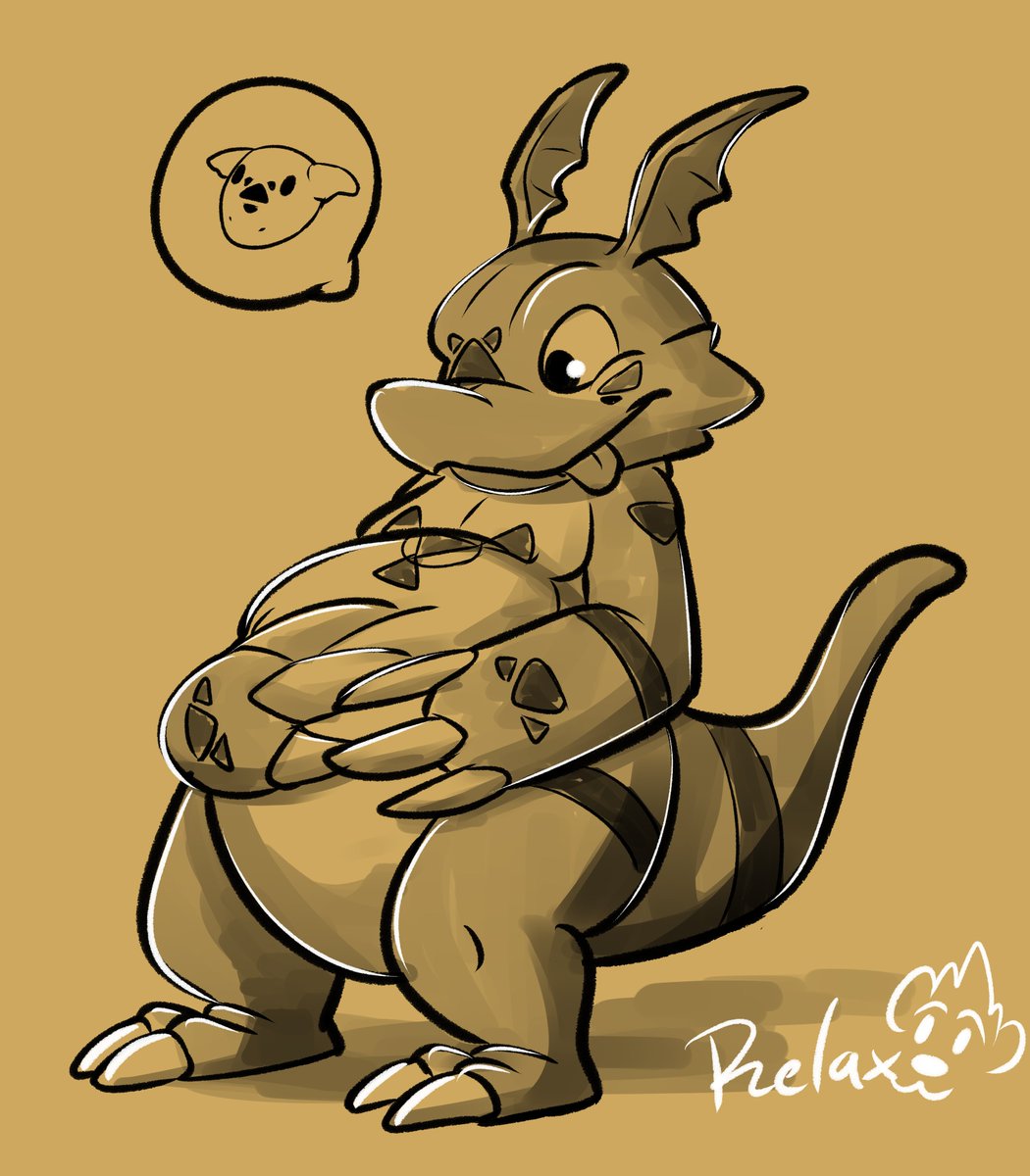 This is @mark_komodo rubs his belly pretty cute Thank you very much for let me draw your fursona :3/ #inktober2021 #inktober2021day28