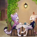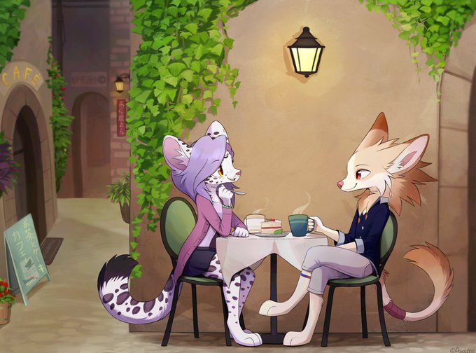 A cute coffee date with Seraph~ This was a commission that I split with Cassius :3 Seraph: @OldManCassius Art by: @SepiaPaws #furry #furryart