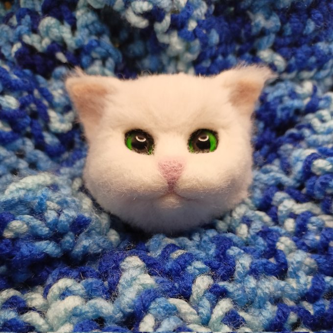 Quería hacer un gatito blanco y me basé en uno de los bonitos hijos de @Deku_Artesania 💙 Se agradece mucho la difusión #woolfelt #羊毛フェルト #ニードルフェルト #ハンドメイド #hechoamano #handmade #needlefelting #needlefelt #gatos