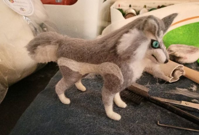 Si queréis al lobete mandadme 💌 Lo pongo a la venta como pieza única porque no creo que lo repita 🙄 me costó bastante hacerlo, muchas horas y mucho dolor de cuello. #woolfelt #羊毛フェルト #ニードルフェルト #ハンドメイド #hechoamano #handmade #needlefelting #needlefelt #zelda
