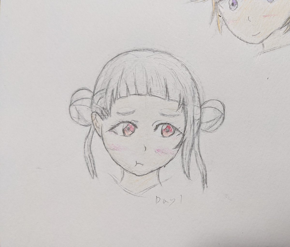 1 11 #レンのイラスト練習日記 2日目 かのんちゃんの色んな表情描くの楽しい 21/10/14 08:27