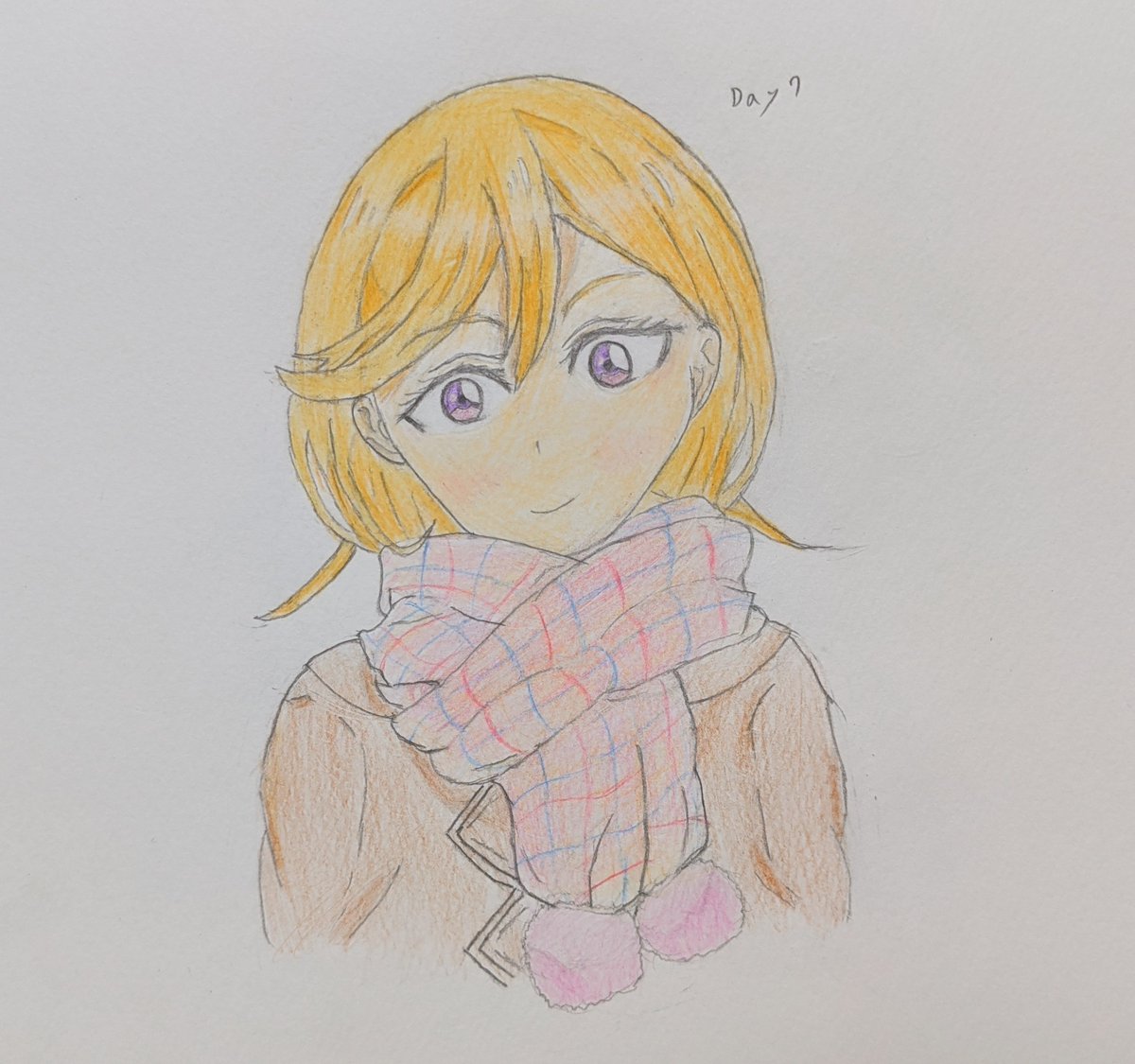 #レンのイラスト練習日記 7日目 マフラーかのんちゃん🎧 かれこれ1週間描いてるのか 三日坊主の私にしては続いてるw