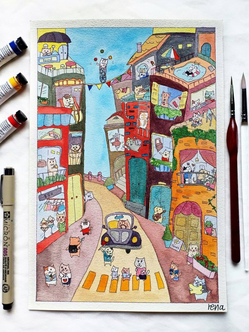 This is actually cat cafe in the Cats town I drew couple of days ago. The cats have decided to open their cafe and serve desserts and drinks. Thinking about illustrating a book for cat lovers. Are there any over here?😺 #catlovers #illustrationart #foodillustration