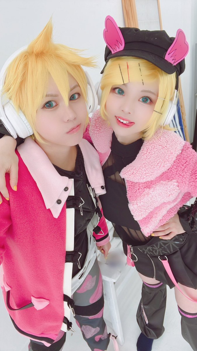 ※コスプレ 💛🧡リンレン💛🧡 ウィッグもカラコンもお揃いの最高な相棒‼️‼️ 2枚目は勝手にこはねの携帯使って撮った、イタズラたのしい😉💛🧡 #0225ビトイタかわいい #prsk_cos