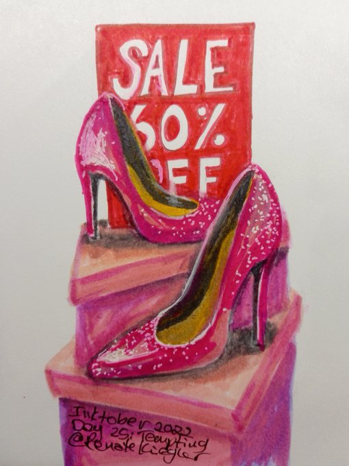 #Inktober2022 Day 25: Tempting @inktober #inktober #Inktober2022day25 #Tempting #KillerHeels #ShoeSale #ChargeMyCard Not that I would fall for these killer heels!