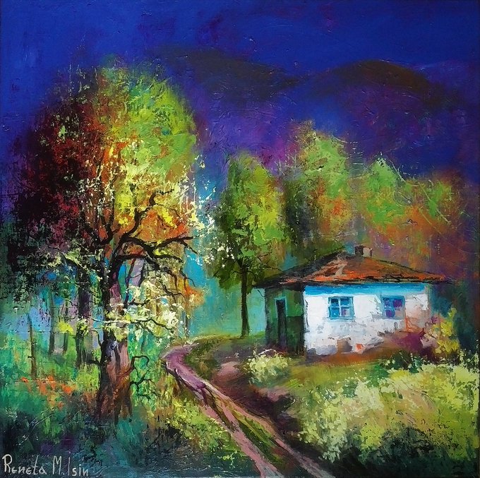 🎨 " Village House " IV Oil on Canvas 60 x 60cm by Reneta Isin , Ренета Исин ©2023🖌 🌐 singulart.com/en/artworks/re…