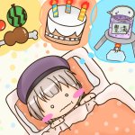 今日はポリン師匠の誕生日!! 誕生日にご馳走と錬金成果を楽しみにして寝付けないポリン描きました(。・・。) #あいミス #ポリン #ポリン生誕祭2022