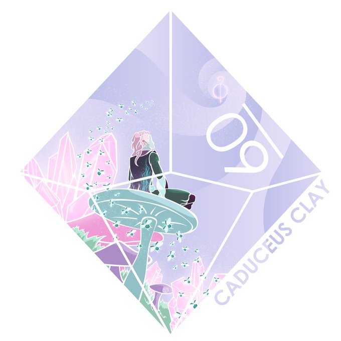 Caduceus Clay Dice terrarium. Cad perfectly fits this style or does my style fit Cad perfectly? Gave Cad the D100 for the two successful divine interventions 😇. #criticalrole #criticalroleart #criticalrolefanart #mightynein #themightynein #Caduceus #CaduceusClay #critrole
