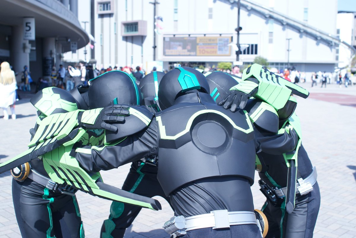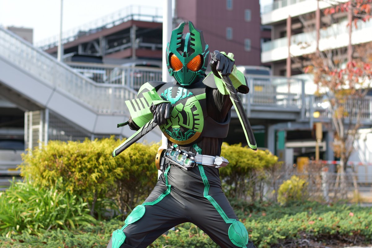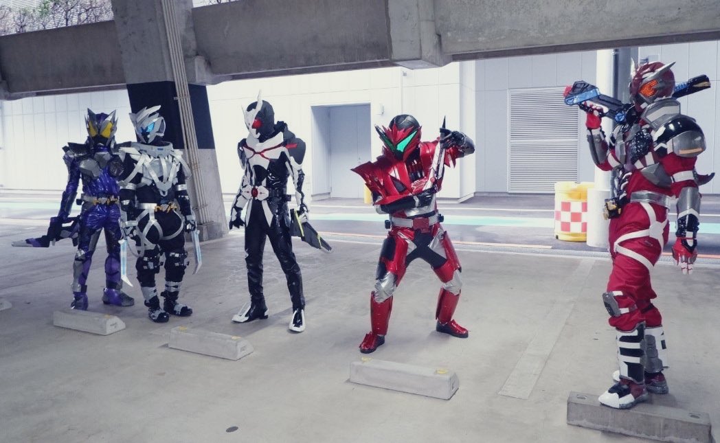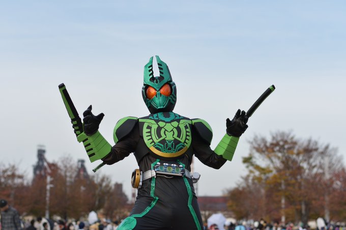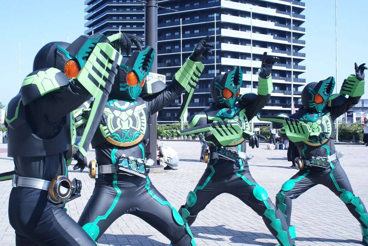昨日はアコスタお疲れ様でした! もいもいさんからサポートうけて2月くらいからガタキリバを作ってましたー! 4人でワチャワチャするの楽しかったから徹夜で頑張った甲斐がありました笑笑 型紙・タイツ:もいもいさん #アコスタ福岡PayPayドーム