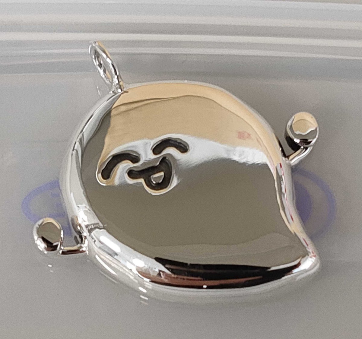 赤いおじさんならぬ銀のおじさんを作ってみました。 3D CADでモデリングしたものを一度出力し、それを鋳型にして溶かした銀を流し込んで造る鋳造成型です。 銀含有率925‰以上の本物の銀製品である事を示す『925』の刻印もバッチリ。 #イオリの森美術館 #赤いおじさんの森美術館 #どっとライブ造形部 twitter.com/ReopaKinmugi…
