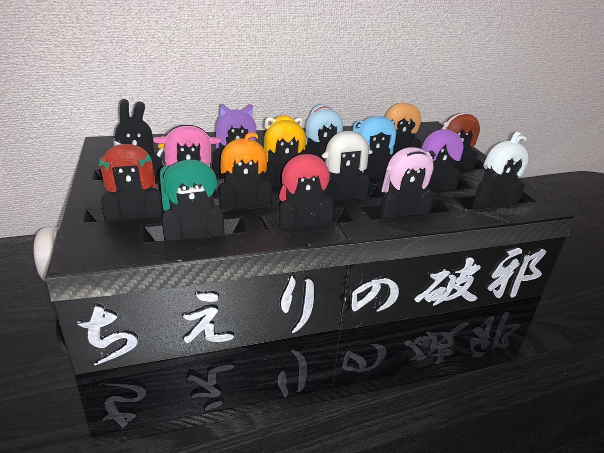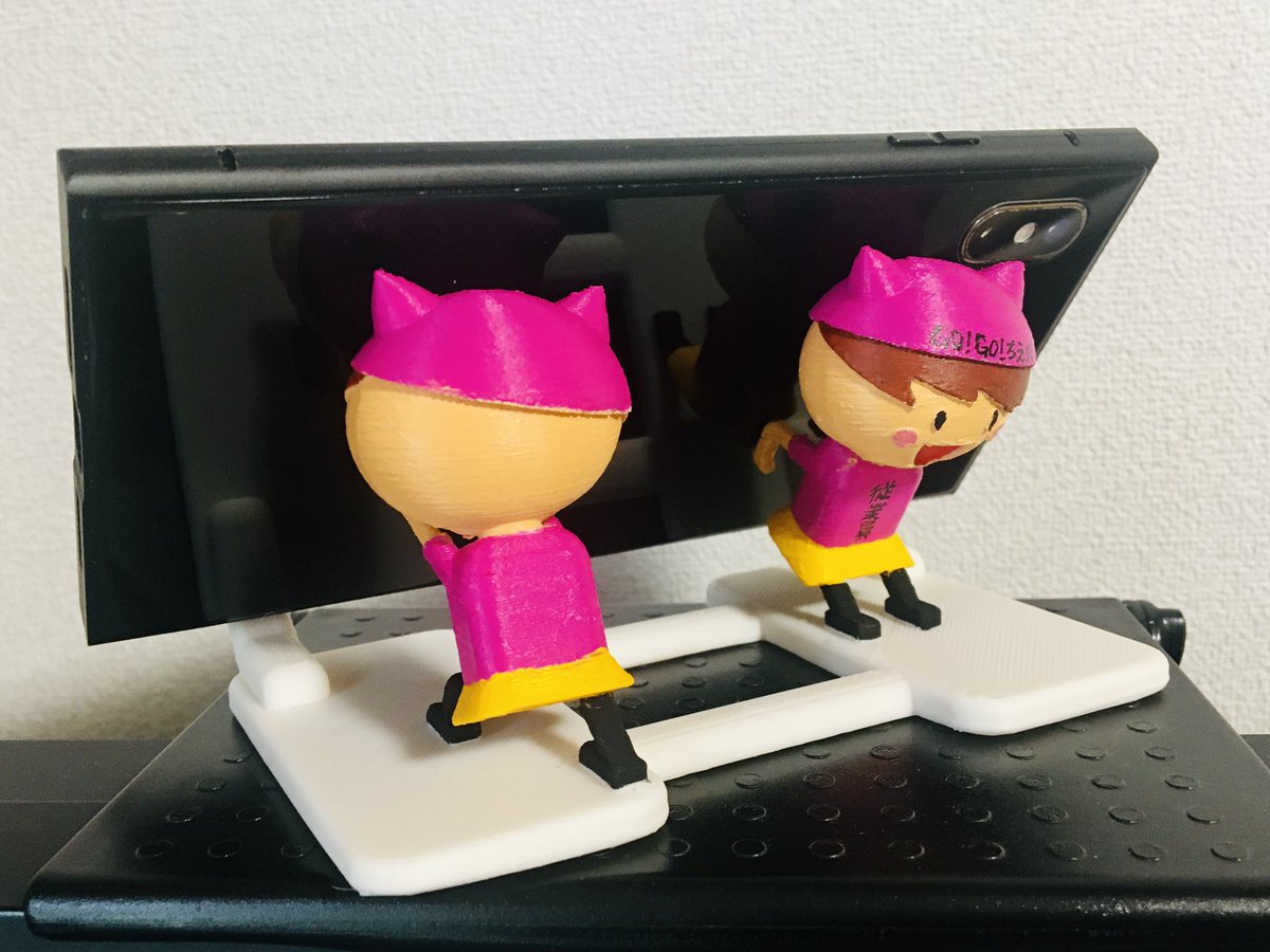 在宅ワーク中にどっとライブの配信を快適に見るために3D CADと3Dプリンターで 『ちえりちゃんの配信を影から支える従業員ちゃんスマホスタンド』 を作りました。 登録者10万人まであと少し! 頑張れー!! #ちぇり絵 #どっとライブ造形部