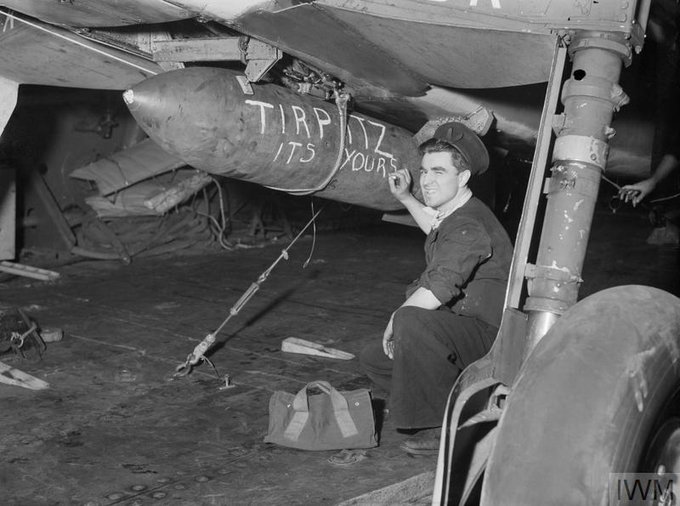 125 395 タングステン作戦で攻撃隊準備中のフューリアス。整備員がウインクしながら爆弾に「TIRPITZ(お前の分)」と落書きしているの本当に煽りスキルが高い。 20/11/28 00:10