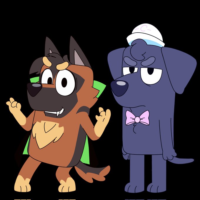 Streber and Kevin in Bluey, looking back I should have made Jack a black lab and Kevin a border collie... #spookymonth #spookymonthfanart #SpookyMonthStreber #spookymonthKevin
