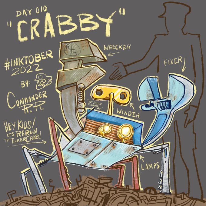 Crabby #inktober2022 #inktober drawing Rerun our #TINKERTOPIA robot crab cartoon mascot in #procreate !
