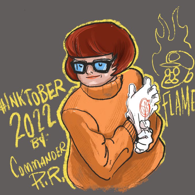 Day 005 "FLAME" #inktober2022 a full metal alchemist/VelmaScoobyDoo mash up.. Its never too late to figure out who you are, and burn down your h8rs