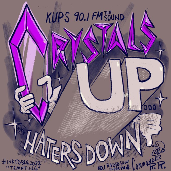 #inktober2022 tempting tribute to my favorite @univpugetsound student radio 📻 show on @KUPSTHESOUND "CRYSTALS UP, HATERS DOWN!" great late night drawing companions in 2022