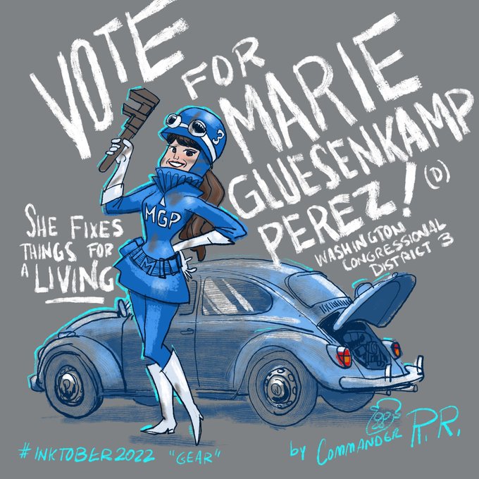 #inktober2022 gear fan art tribute to @MGPforCongress a candidate who knows how to fix things for a living! #TINKERTOPIA endorsed for Congressional district 3! #waelex -- VOTE