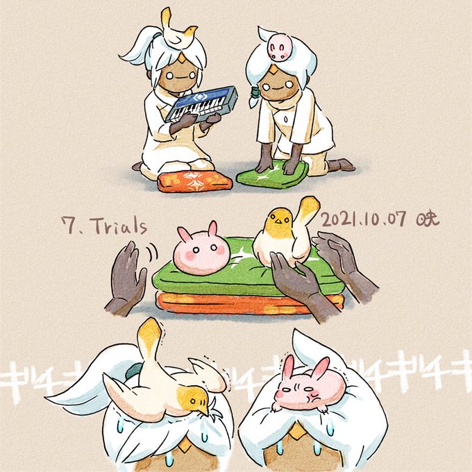 15.Villageers 「星月夜の砂漠からの荷物だよ」 「おお、これが噂の…」 「ほどほどにしとけ」 「嗜むのと溺れるのとは一緒にせんでほしいの」 #thatskygame #skytober2021