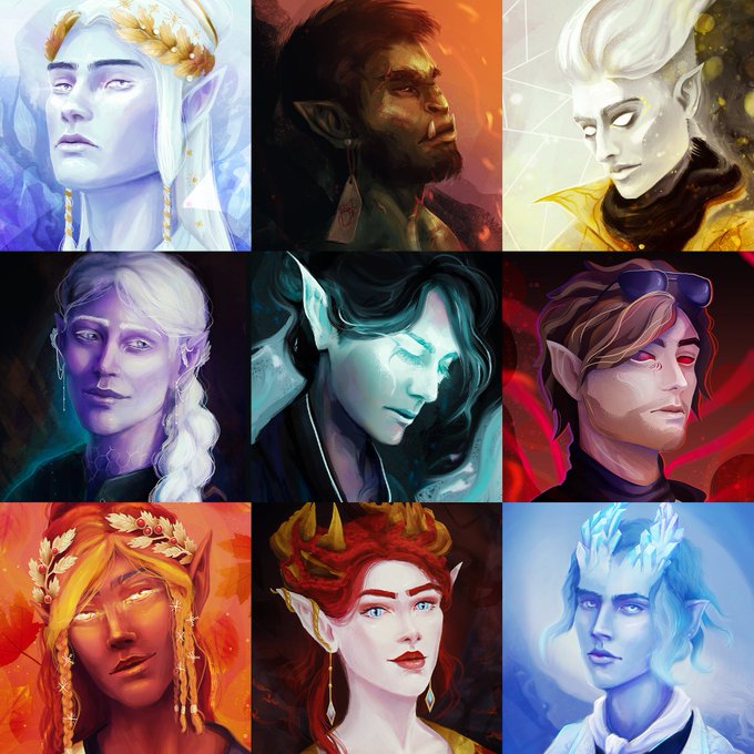 All of my Eladrins so far. ✨ I have few spots left in this year for character commissions! Message me for more info. ✉ #DnD #dndart #originalcharacter