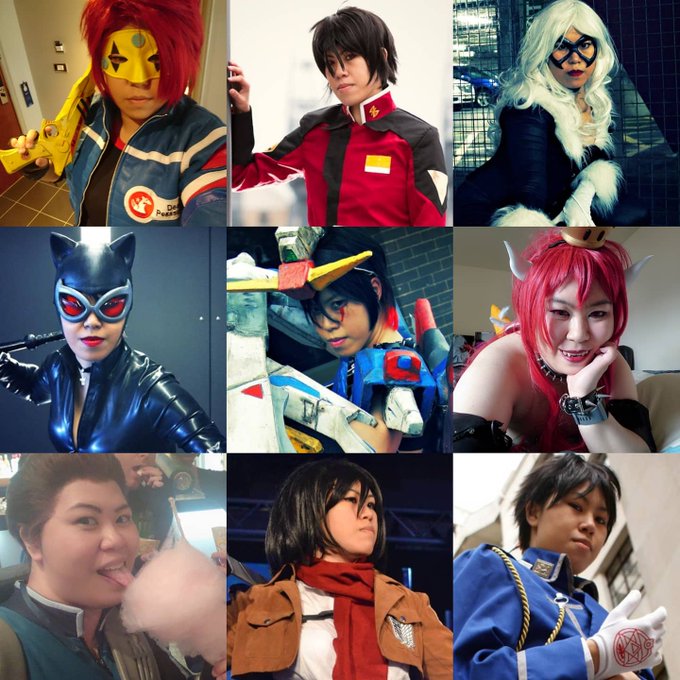 Here's Jojo's contribution to our Face your Cosplay challenge posts. (l-r, top-bottom): Party Poison/Gerard Way, Shinn Asuka, Black Cat/Felicia Hardy, CatwomanSelina Kyle, Destiny Gundam gijinka, Bowsette, Scott Tracy, Mikasa Ackerman and Roy Mustang. #faceyourcosplay #cosplay