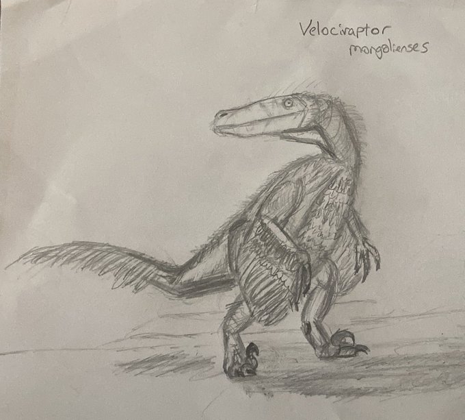 He’s a WIP. It’s been a long time since routinely drawing and I’ve never spent time drawing detailed feathered creatures but I’m happy to see small improvements. I think the point is to have fun, no? #dinosaurs #velociraptor #paleoart